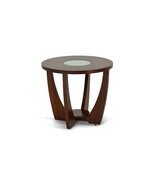 Steve Silver Rafael 25.5" Round Merlot Wood End Table with Cracked Glass Insert