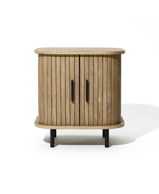 Rosemary Lane 18" Banana Leaf Handmade Linear Wrapped with Cream and Black Stripes Accent Table