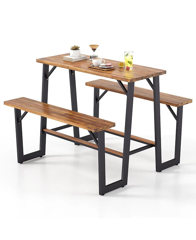 Slickblue 2-in-1 Transforming Wooden Picnic Table and Bench Set for Outdoor Use