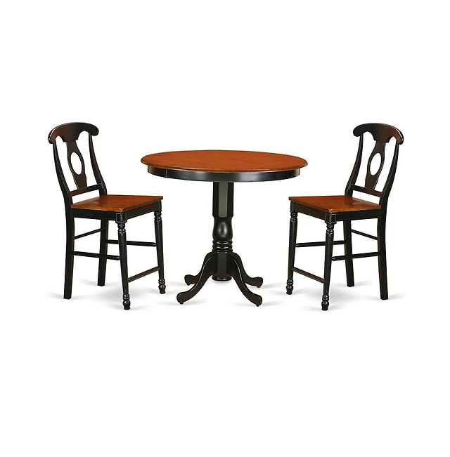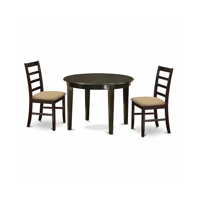 Roundhill Furniture Varna 3-Pc Round Dining Set, Trestle Dining Table with 2 Chairs