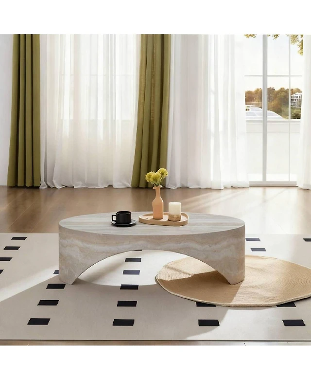 Streamdale Modern Round Coffee Table with Carved Pine Top and Metal Legs