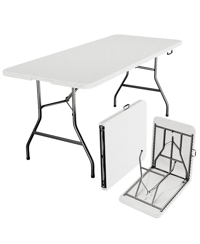 Skonyon Folding Picnic Table Acacia Wood Dining Table with Metal Frame for Indoor Outdoor Activities