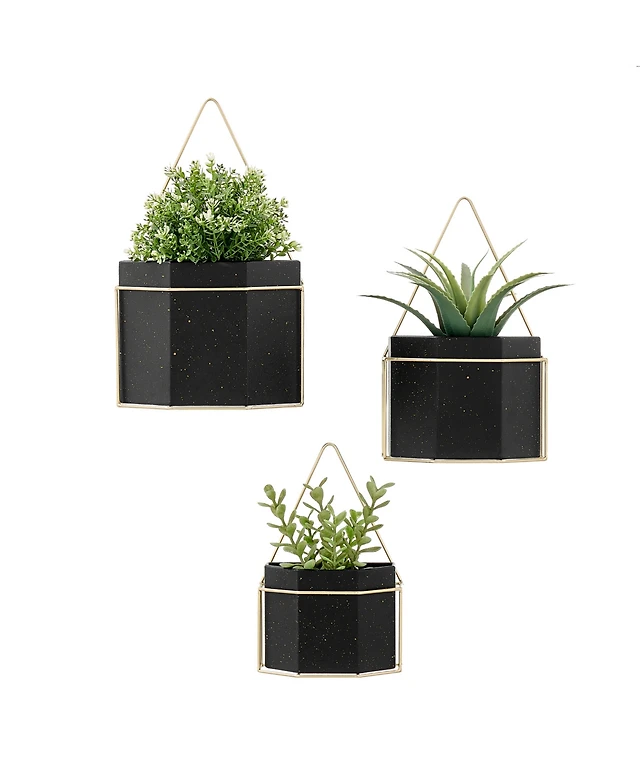 Decorative Square Polyrattan Basket-Style Planters - 9", 11.5", and 14.75" Square - Black - 3-Piece Set