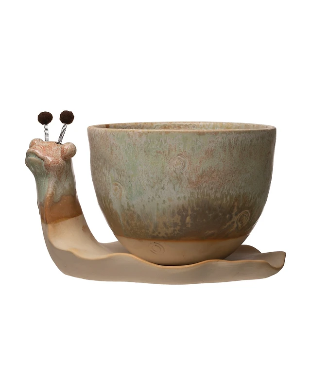 Garden Elements Glazed Brushed Happy Large Plastic Planter Dark Teal 15 Inch