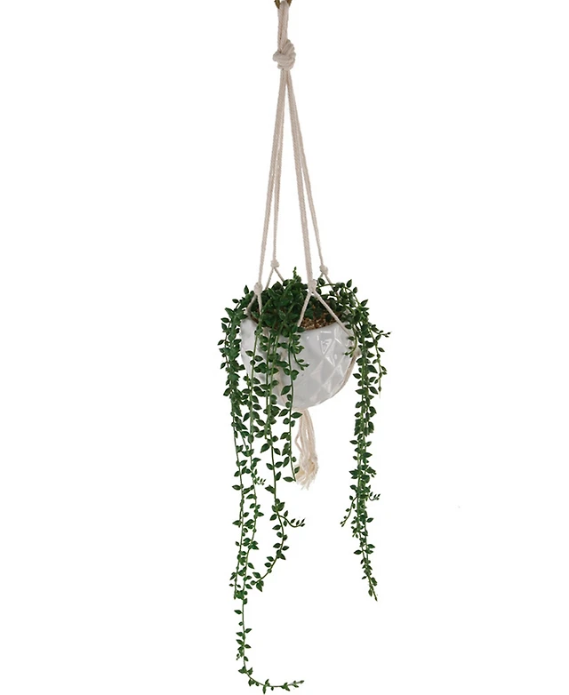 Flora Bunda String of Pearls Macrame Hanging Ceramic Pot Donkey Tails, 4"