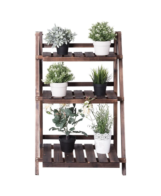 3 Tier Outdoor Wood Design Flower Pot Shelf Stand Folding Display Rack Garden