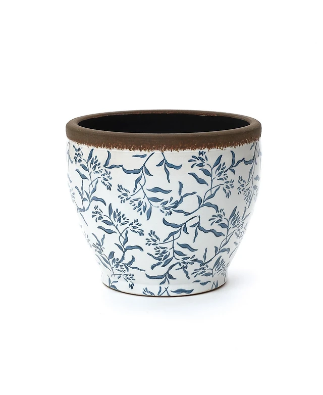 LuxenHome Blue Floral Ceramic Planter, 12.2" Round, Indoor & Outdoor Garden Pot
