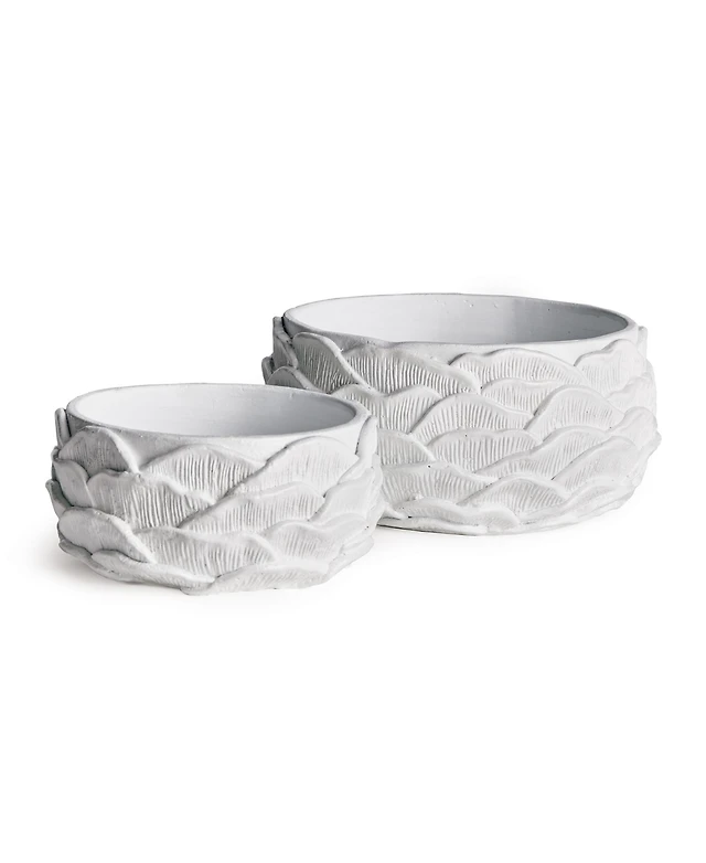 LuxenHome 2-Piece Marble White with Brown Ribbons Texture MgO Planter Set, Indoor and Outdoor