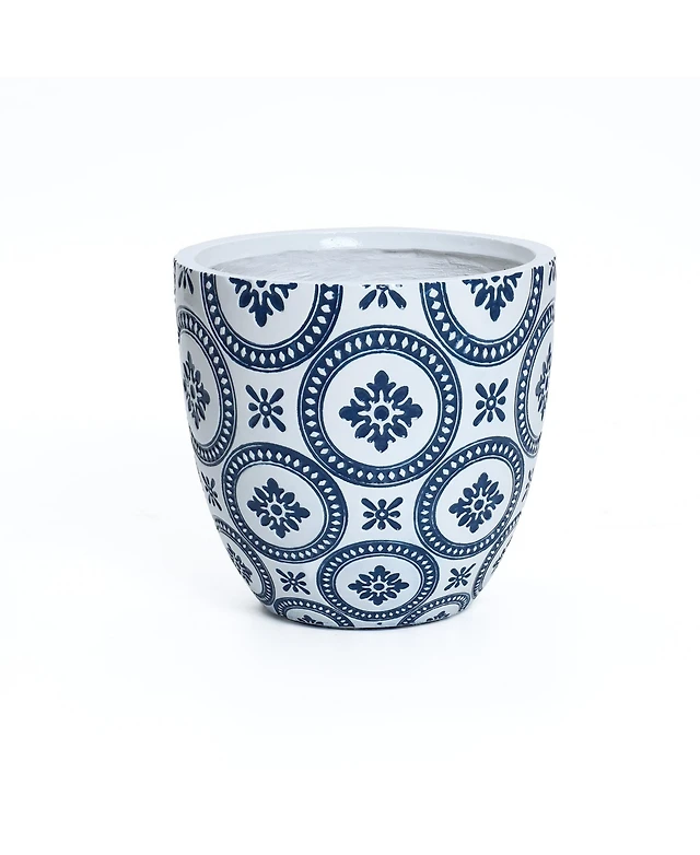 LuxenHome Gray Glen Pattern 22.4-Inch Tall MgO Round Planter