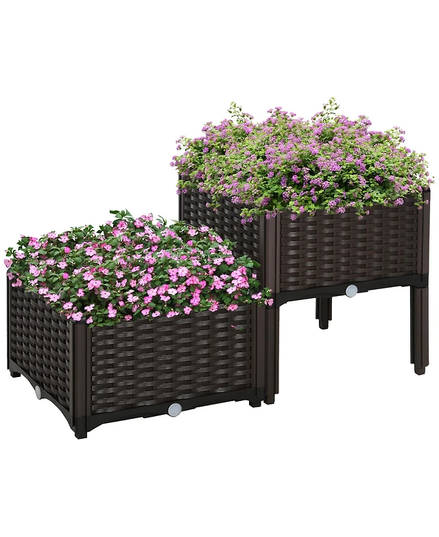 Modern Decorative Standing Square Polyrattan Planter Containers - Brown - 2-Pack