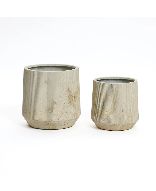 LuxenHome 2-Piece Marble Off-White Ribbed Texture MgO Planter Set, Indoor and Outdoor