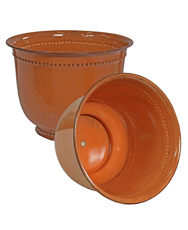 Resort High-Fired Outdoor/Indoor Glazed Uv- and Frost-Resistant Ceramic Planters with Drainage Holes - 2-Pack