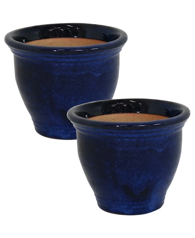 Chalet Outdoor/Indoor High-Fired Glazed Uv- and Frost-Resistant Ceramic Planters with Drainage Holes - 2-Pack