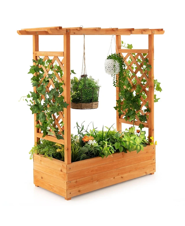 Gymax Raised Garden Bed Planter Box w/ Side & Top Trellis for Vine Climbing Plants