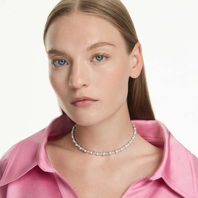 Matrix Tennis necklace, Crystal pearl, Round cut, White