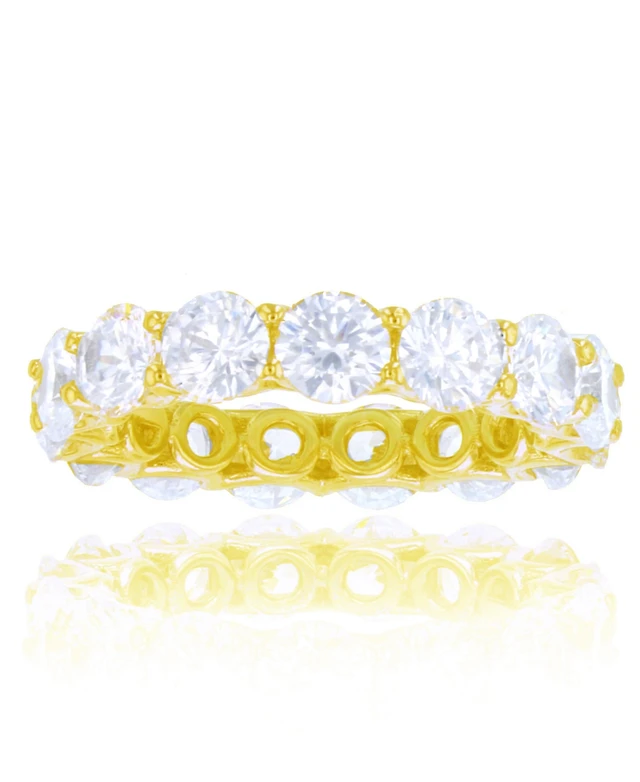 Genevive Sterling Silver 14k Gold Plated Cubic Zirconia Pave Bezel Ring