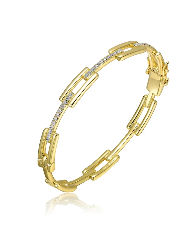 Rachel Glauber 14K Gold Plated with Bezel Set Cubic Zirconia Heart Charm Bracelet