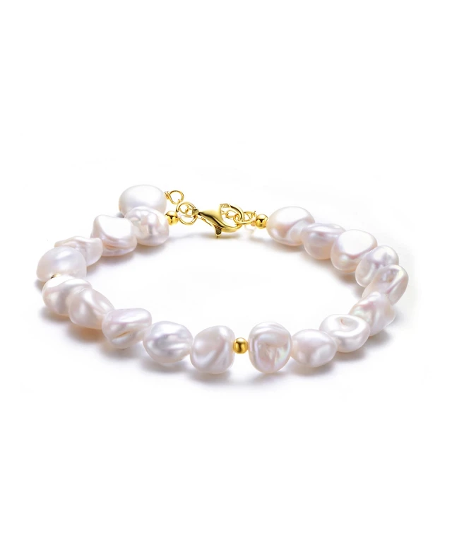 Sterling Silver Gold Plated with Freshwater Round Pearl Bracelet