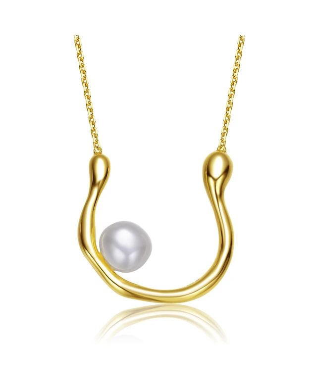14K Gold Plated with Genuine Freshwater Pearl “U” Necklace