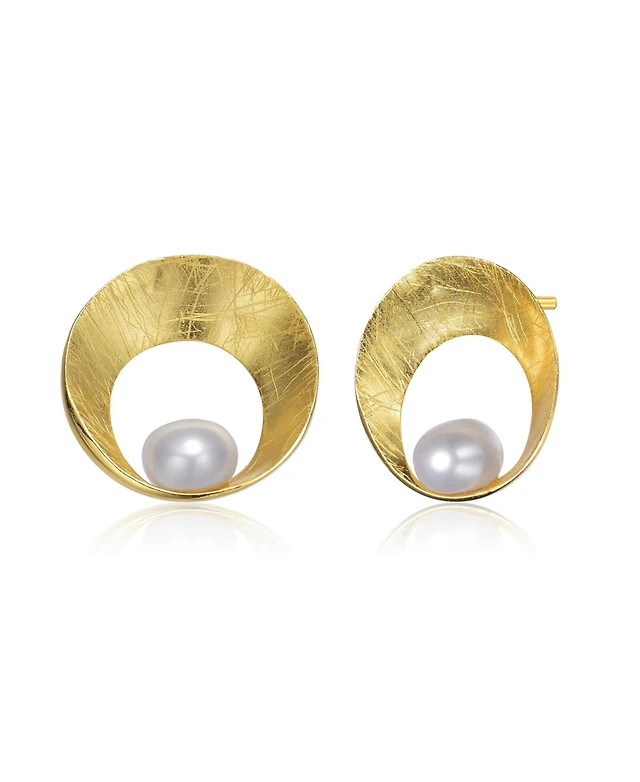 14K Gold Plated with Curved Design and Pearl Accent Open-Style Ring