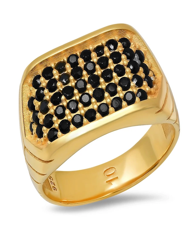 Steeltime Men's 14K Gold Plated and Sterling Silver Simulated Black Diamonds Ring