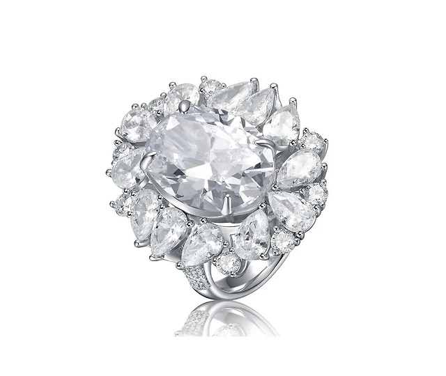 Genevive Sterling Silver White Gold Plated with Clear Cubic Zirconia Statement Bracelet