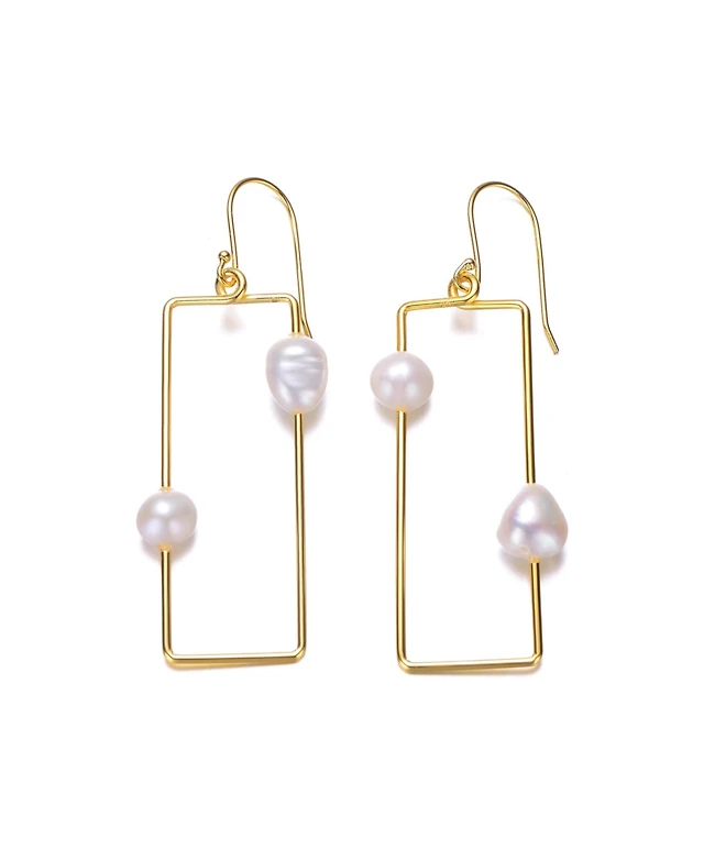 Sterling Silver 14K Gold Plated with Coin Shapped Freshwater Pearl Dangle Earrings