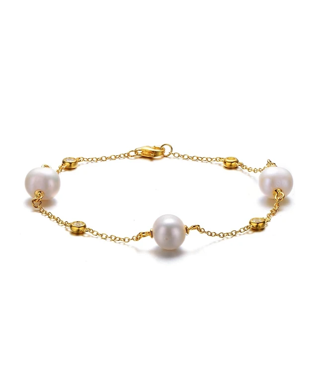 Sterling Silver 14K Gold Plated with White Freshwater Pearl Y-Style Necklace