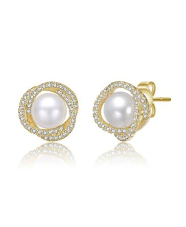 And Now This Trio Ball Stud, Round Cubic Zirconia Stud and Glass Pearl Stud Set in Silver Plate or Gold Plate