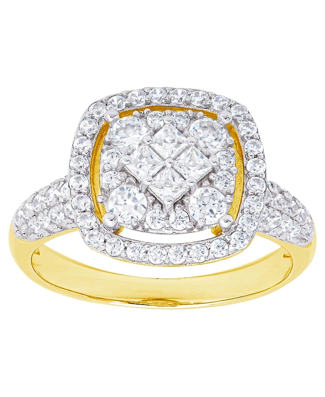 Cubic Zirconia Cushion Ring Fine Gold Plate or Silver