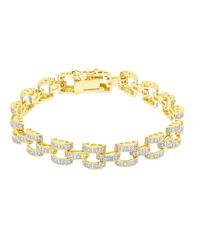 Diamond Accent Panther Link Bracelet Silver Plate or Gold