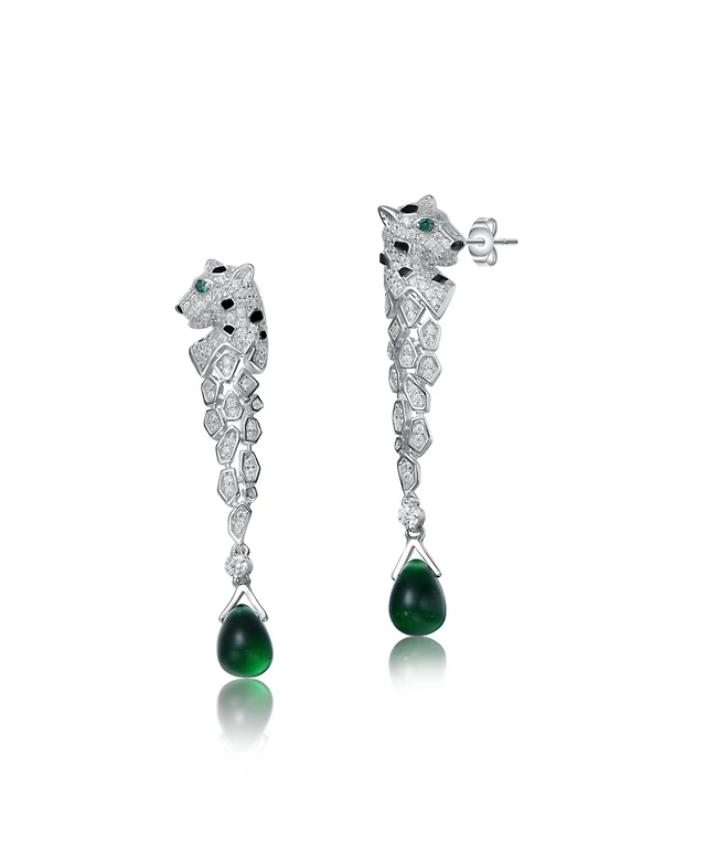 Sterling Silver 14k Yellow Gold Plated with Cubic Zirconia Entwined Double Raindrop Bangle Bracelet