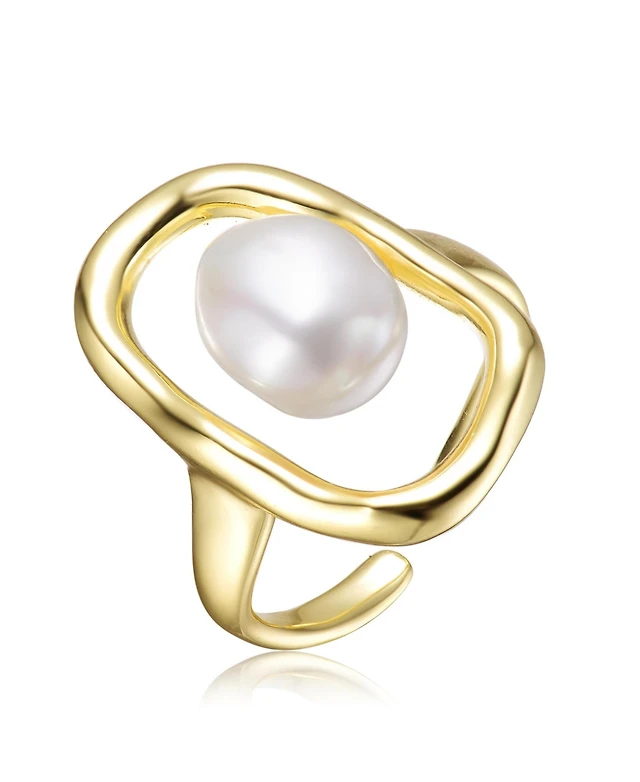 Sterling Silver 14K Gold Plated with Genuine Freshwater Pearl Ring