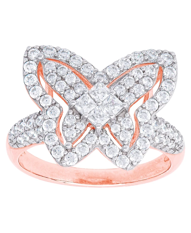 Cubic Zirconia Butterfly Ring Fine Rose Gold Plate or Silver