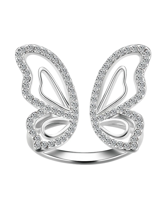Unwritten Crystal Open Butterfly Ring Silver Plate or Gold Flash