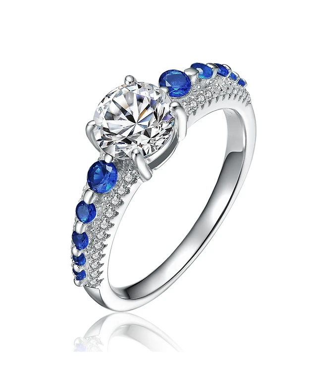 Sterling Silver Rhodium Plated with Blue Cubic Zirconia Statement Ring