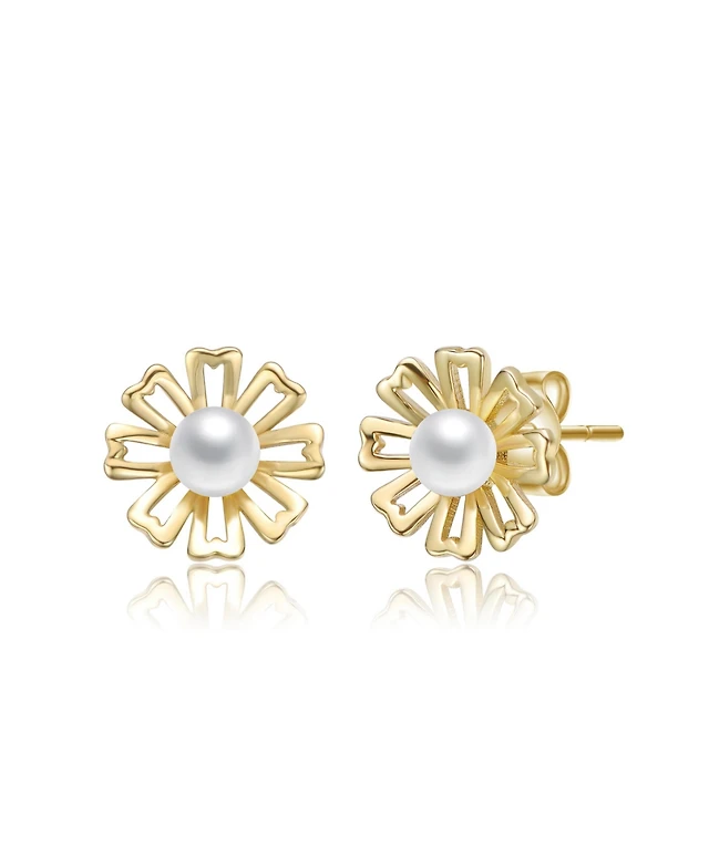 14K Gold Plated with White Pearl Flower Pearl Stud Earrings