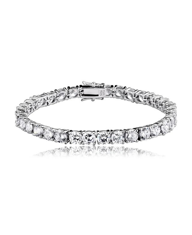 Genevive Sterling Silver White Gold Plated with Clear Cubic Zirconia Mosaic Pattern Statement Bracelet