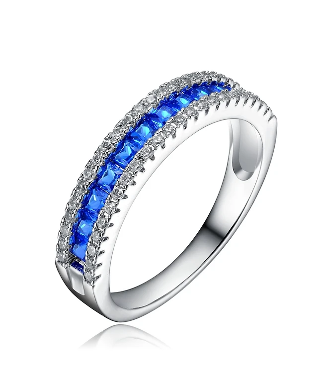 Sterling Silver with Rhodium Plated and Blue Cubic Zirconia Band Ring