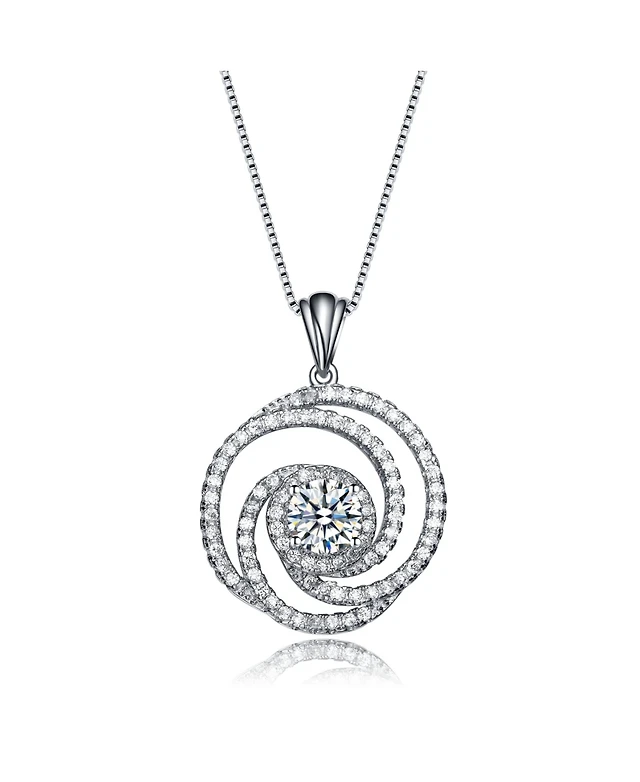 Sterling Silver White Gold plated Cubic Zirconia Swirl Knot Necklace