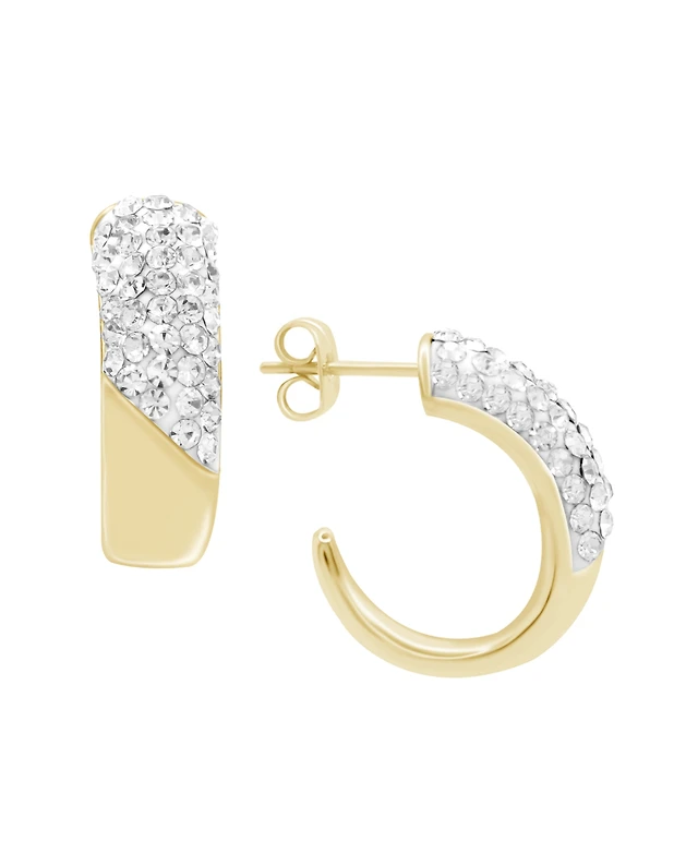 Essentials High Polished Clear Crystal Cross Over C Hoop Earring, Gold Plate and Silver Plate