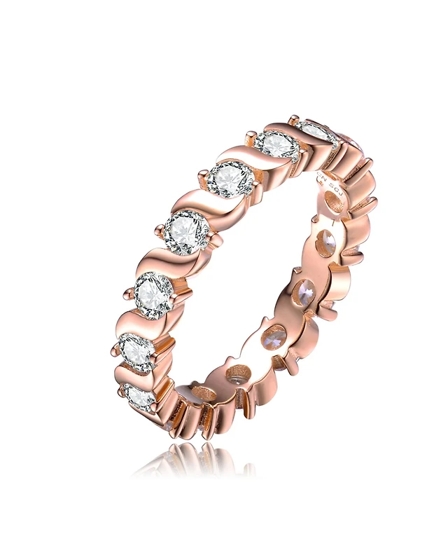 Sterling Silver with Rose Gold Plated Clear Cubic Zirconia Band Ring