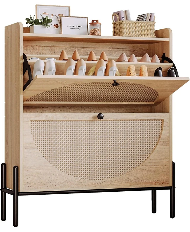 Streamdale Rattan 3 Door Shoe Rack, Freestanding Modern Shoe Storage Cabinet, for Entryway