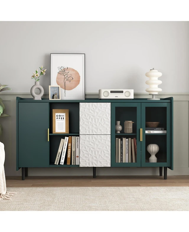 Slickblue Modern Glass Door Sideboard Buffet Dining Storage Cabinet for Stylish Organization