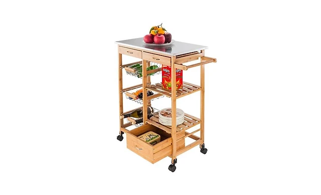 Kitchen Island 2-Door Storage Cabinet with Drawers and Stainless Steel Top