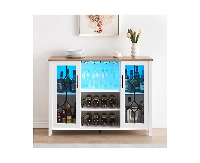 Streamdale Buffet Storage Cabinet With Single Glass Doors And Unique Bell Handle