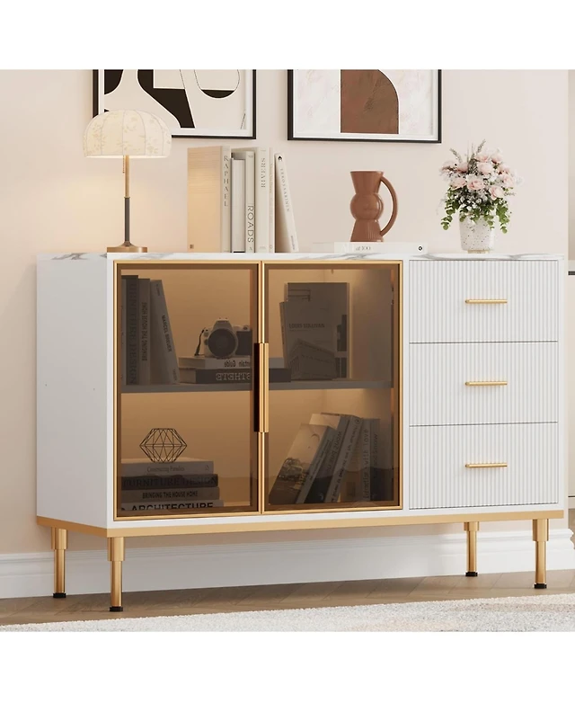 gaomon 53.5 Inch White 7-Drawer Modern Dresser, Triple Chest, Gold Accents, Long Storage for Tv Stand, Closet, Living Room