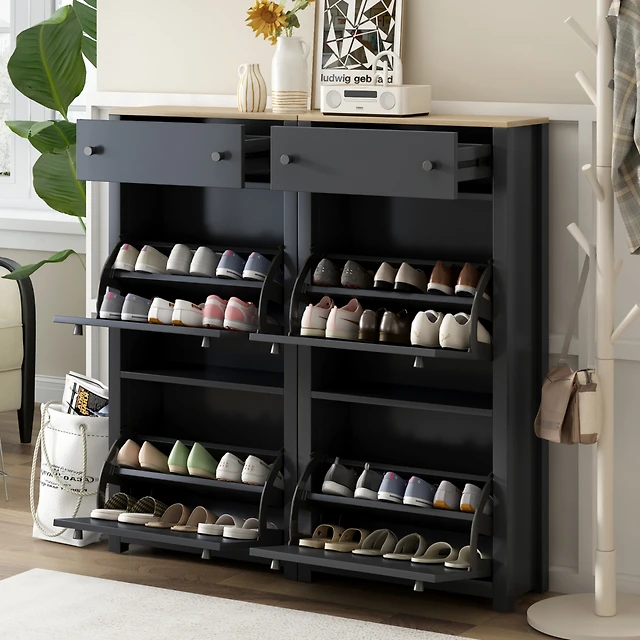 Streamdale Furniture red Led light shoe box three layers with glass doors