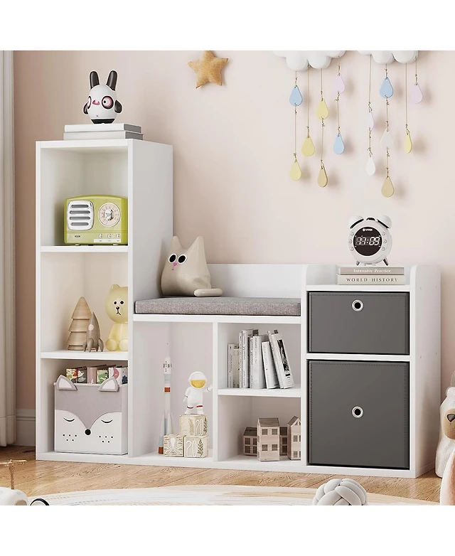 Streamdale Furniture Kids Storage Organizer 8 Bins, 4-Tier Bookcase, 2 Cabinets