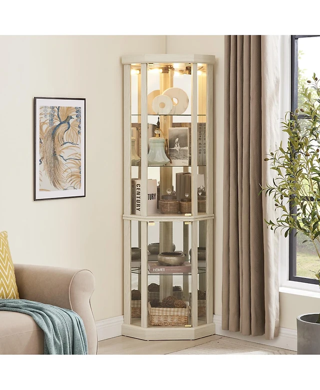 Streamdale Furniture Farmhouse 4-Tier Display Shelf with Dimmable Ceiling Light & Storage